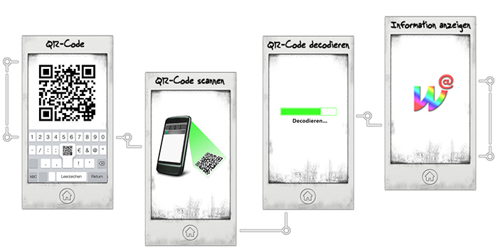 Weiterhin folgen die QR-Codes dem Prinzip der Einfachheit, indem sie den Nutzer*innen lokal nicht verfügbares Wissen durch ein paar einfache Klicks zur Verfügung stellen. Es müssen also keine technischen Hürden überwunden werden, um in das Projekt einzusteigen, sodass der Aufforderungscharakter sehr hoch ist. Schüler*innen sind an das Benützen von Handys gewöhnt und werden sich deshalb leicht mit dem für sie neuen Programm vertraut machen.